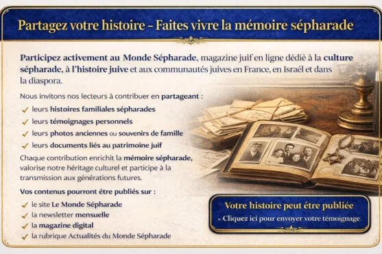 Participez activement au Monde Sépharade, magazine juif en ligne dédié à la culture sépharade, à l’histoire juive et aux communautés juives en France, en Israël et dans la diaspora.